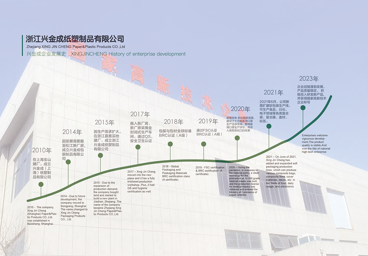 Xingjincheng Enterprise was established in August 2010, specializing in food paper containers, coated paper cups, plastic products, for food, medicine, personal care and household products industry to provide three-side sealing bags, back sealing bags, four-side sealing bags, eight-sided sealing bags, zipper bags, stand-up pouches and other research and development, production and sales in one of the modern generation enterprises.